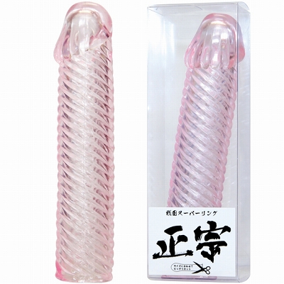 戦国武将の名に相応しい、夜の頼もしい味方が登場!フルカバータイプの男性用補助グッズ「戦国スーパーリング 正宗」は、ピンクカラーのボディ全体がトルネードのように巻かれたデザイン。装着すれば細かなスパイラルが、パートナーを刺激!もちろん早漏防止効果もアリ!サイズはハサミ等でカットし、調節もできます。