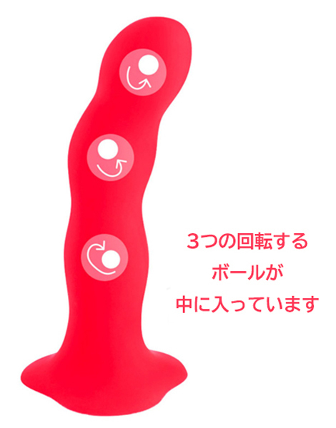 ウェーブ形状のボディに内蔵された重厚な鉄のボールが中でコロコロと動きまわり、膣壁を優しく刺激する!素材には滑らかで柔らかなプレミアムシリコンを採用し挿入もスムーズ♪底には床に貼り付けられるよう吸盤が付いています。