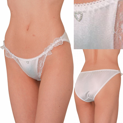 サイドからデリケートゾーンにかけてあしらわれた、エレガントなレース使いが見事!こちらは清楚なホワイトカラー。
