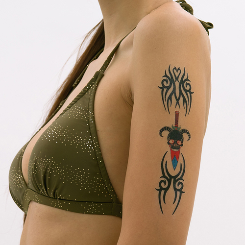 TATTOO(タトゥー)シールで、グッと色っぽく!いつものコスプレ衣装に合わせて、こだわりの箇所に貼り付けるだけ!特殊な素材を使用しているので、皮膚の動きと一緒に伸び縮みします。