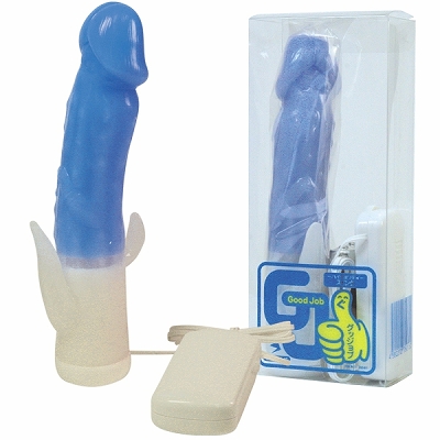 女性の方や初心者の方でも扱いやすい、細めの形状が特徴的なバイブ「GJ(グッジョブ)」ブルーです。