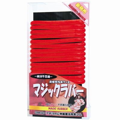 3mの長さが、最長約18mまで伸びる摩訶不思議なロープ!どのくらい伸ばすかによって、締め付ける強さが変わるのが特徴的!もちもちした感触が得られるソフトラバー製を使用。