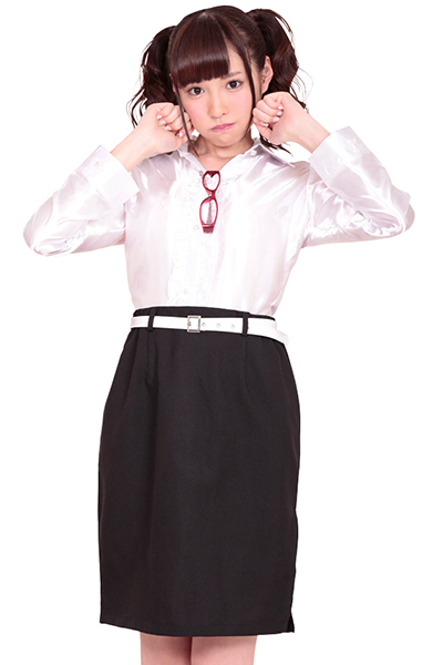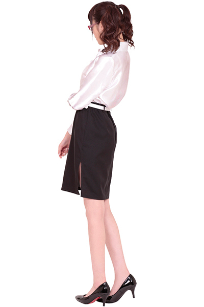 憧れの美人教師に変身!ブラックのスカートに入ったスリットから覗く生足が、セクシーなコスチューム。