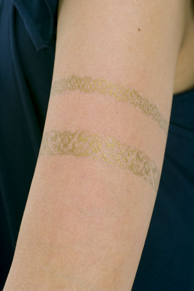 イベントやお祭りに大活躍!レギュラーサイズのタトゥーシール「腕輪・金ゴシック」。