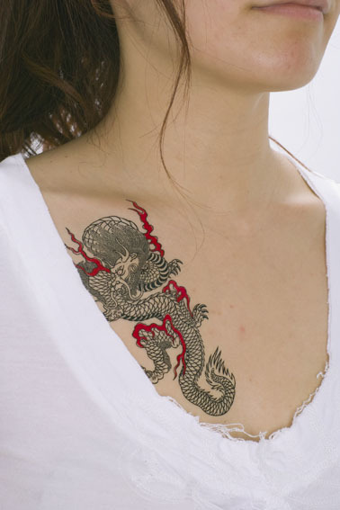 イベントやお祭りに大活躍!レギュラーサイズの刺青シール「線画・黒ドラゴン」。