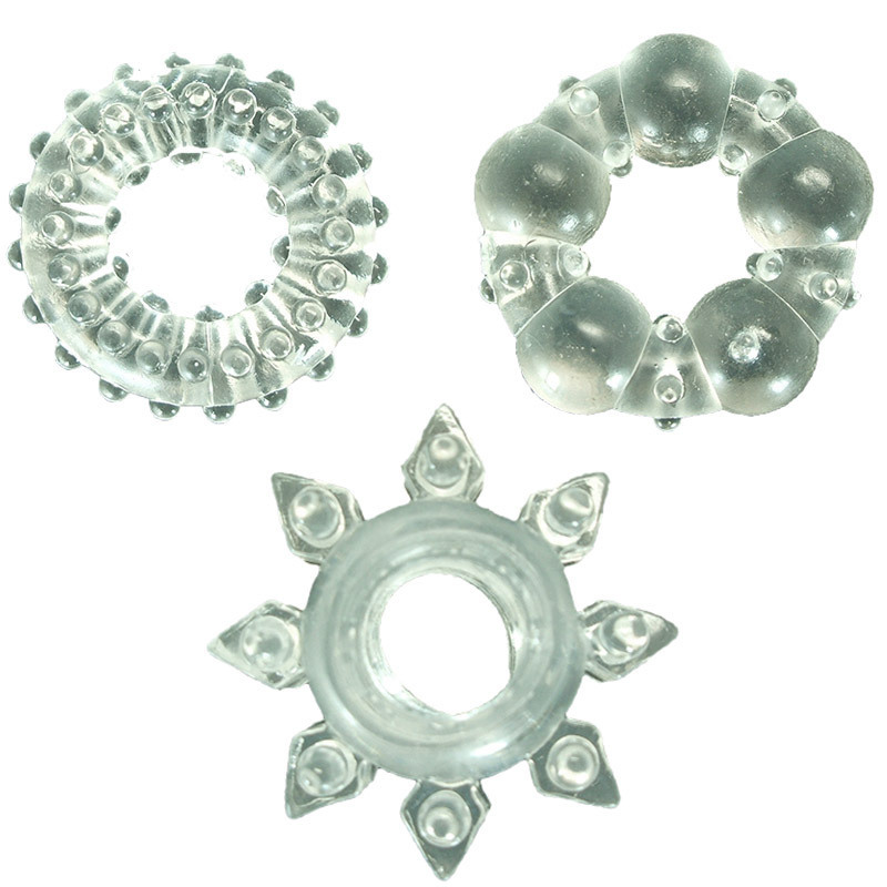 元気がないムスコを強力サポート!夜の生活にパワーがみなぎる、ファッショナブルなデザインのコックリング3点セット。