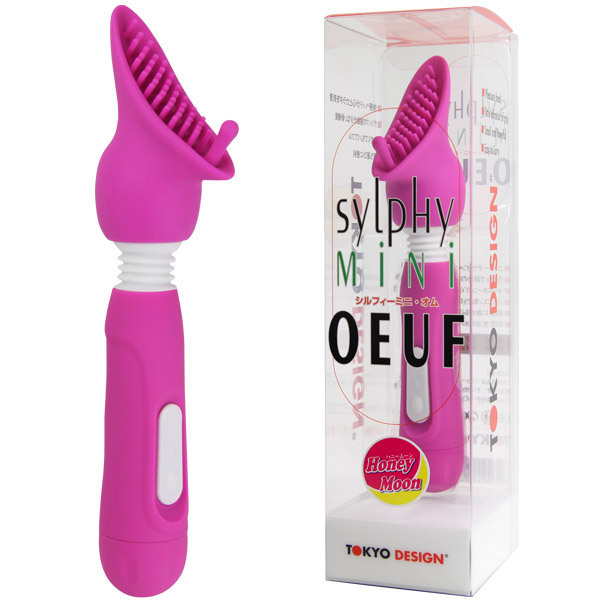 ニューデザインでヴァギナを狙いうち!細長いブラシヘッドの電マ型ローター「シルフィーミニ・オム ハニームーン」ピンク。