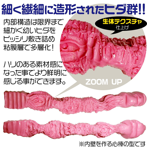 侵入するものを拒み続けるかのようにハードな質感で、細かいヒダを限界までビッシリ敷き詰めた内部構造。