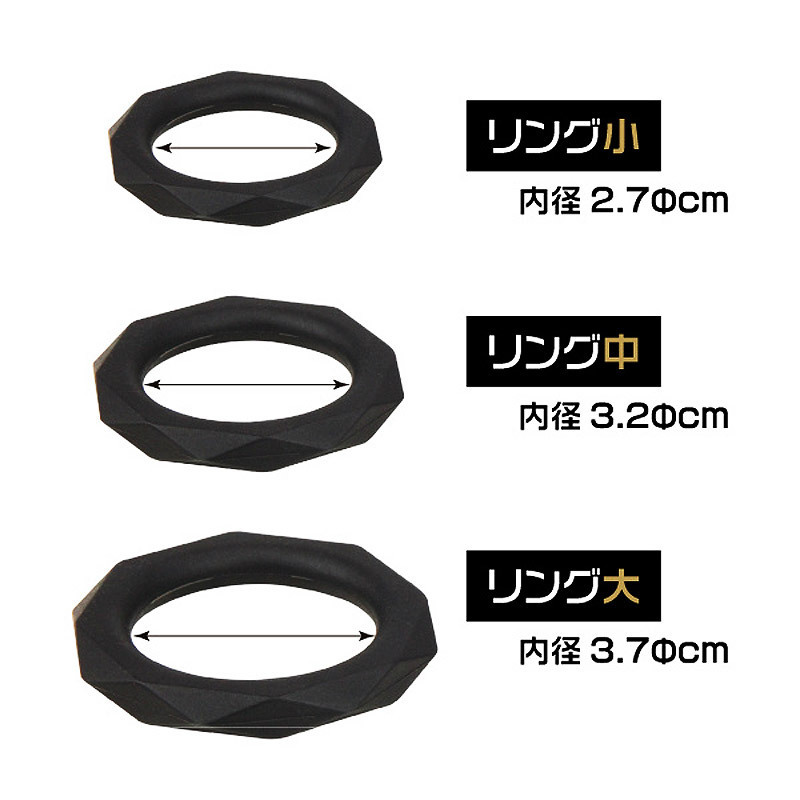 その日の気分でサイズを使い分けたり、それぞれを玉・根元・カリ首に同時装着してもOKな万能サポートグッズです。