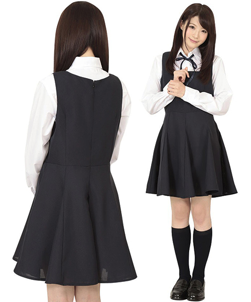 長めのスカートがポイント!清楚な印象を与える、お嬢様系制服コスチューム。
