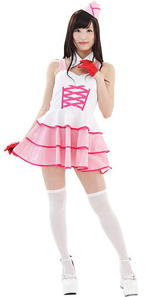 ●白&ピンクのビスチェ風ワンピース●みんなの注目が集まっちゃう・キュートな3段ティアード●アーミーテイストのミニキャップ(ピン2本つき)●とんがり襟がCOOLな白い付け襟。