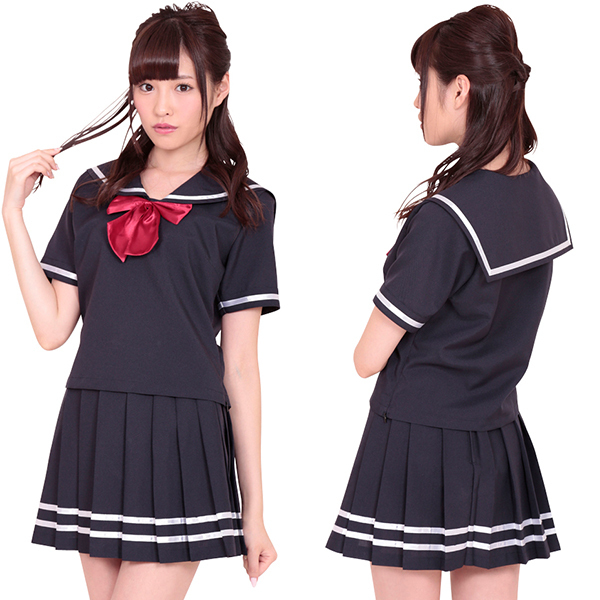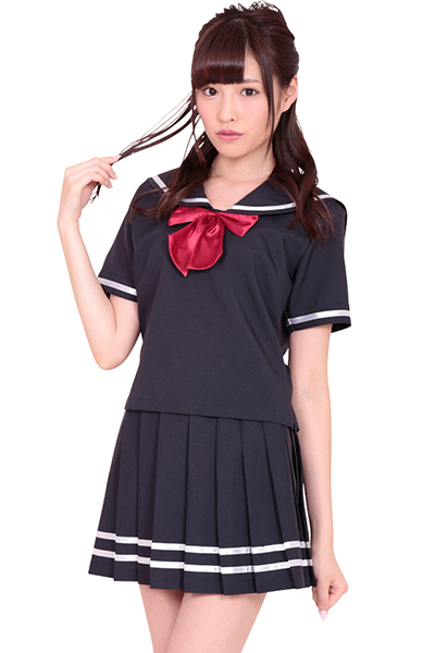 プリーツスカートのダブルラインがカッコいい!濃紺セーラー服コスチューム。