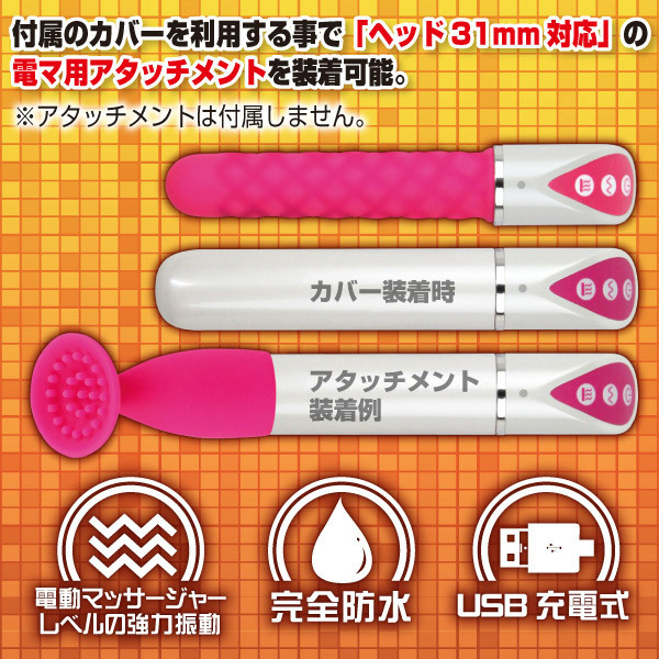さらに、付属のカバーを被せた状態なら、市販の電マ用アタッチメント(ヘッド径約3.1Φcm対応)も装着可能!プレイのバリエーションも広がるハイスペックなローターです。