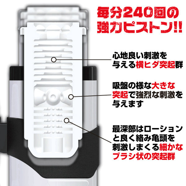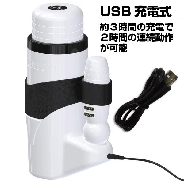 ●大満足のストローク幅5cm●1分間に240回のピストン運動●12種のピストンパターン搭載●肉厚なソフト感触の内蔵ホール●ヒダ・吸盤・ブラシ突起のこだわり構造●ホールは取り外し可能で洗浄も楽々●電池不要のUSB充電式(USBコード付属)●充電3時間で約2時間の連続使用可●相性抜群のGENMUローション(50ml)付き。