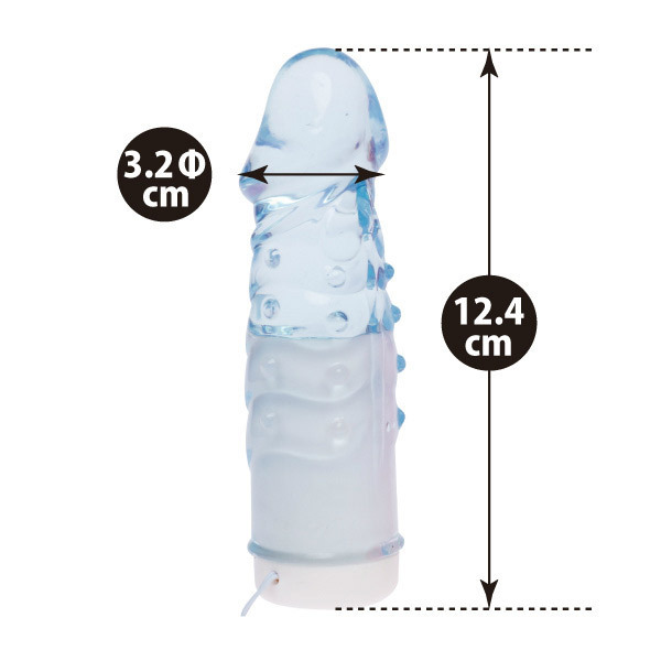 ●小ぶりな全長12.4×3.2cmのコンパクトサイズ●清潔感のあるクリアブルー●アクセントを生むイボ付きリアルフォルム●取り回しやすいコード付きタイプ●無段階の強力バイブレーション●微調整可能なダイヤル式リモコン。