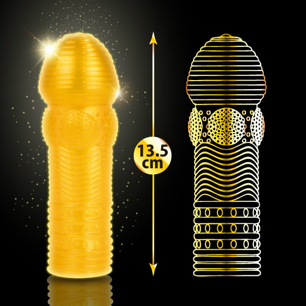 ●煌びやかなゴールドカラー●よく伸びるストレッチ素材・しっかりフィット●安心安全なエラストマー製●先端から根元まで覆うフルカバータイプ●様々な形状がダイレクトに刺激を伝えます●勃起力&早漏防止効果に期待。