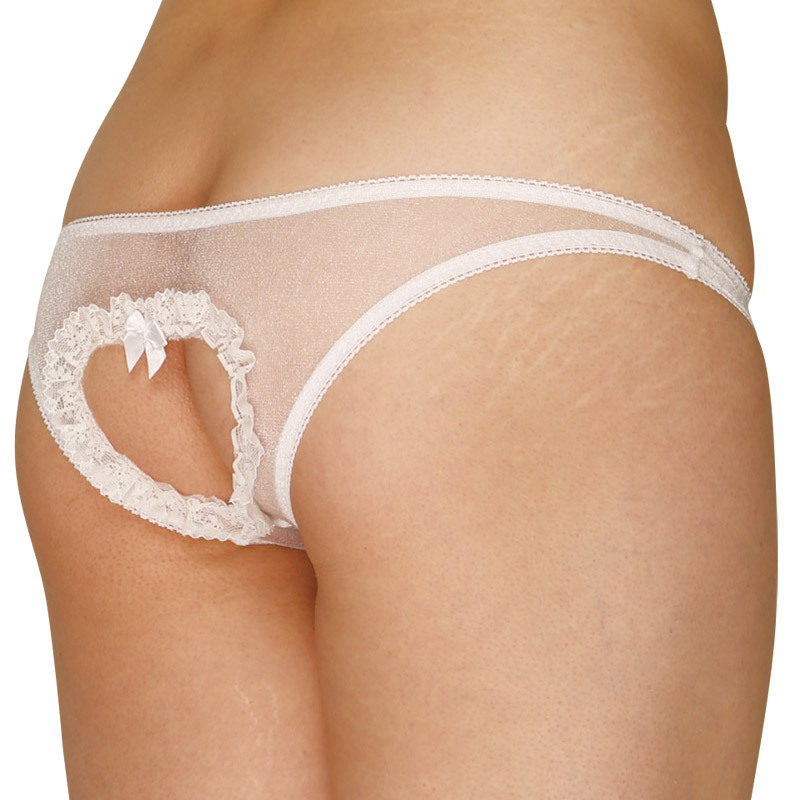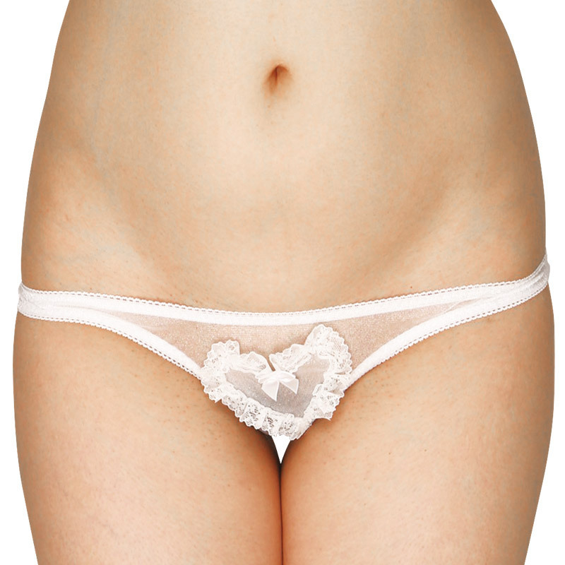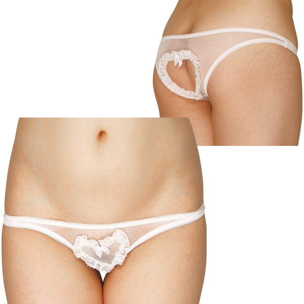 ●ピュアで可憐なホワイトカラー●透け感抜群なシースルー生地を使用●お尻の割れ目が見えるoバック仕様●パンツやスカートからはみ出さないローライズ丈●ハート型をフリルでデコレーション●遊び心満載!ヒミツのポケット付き●日本製・Mサイズ。