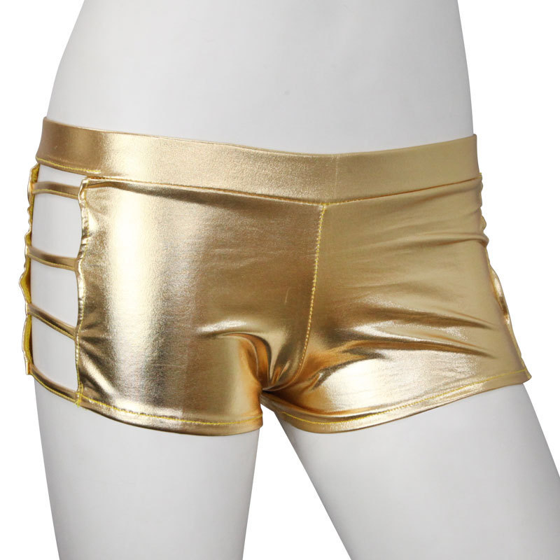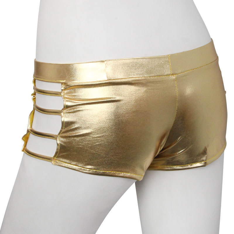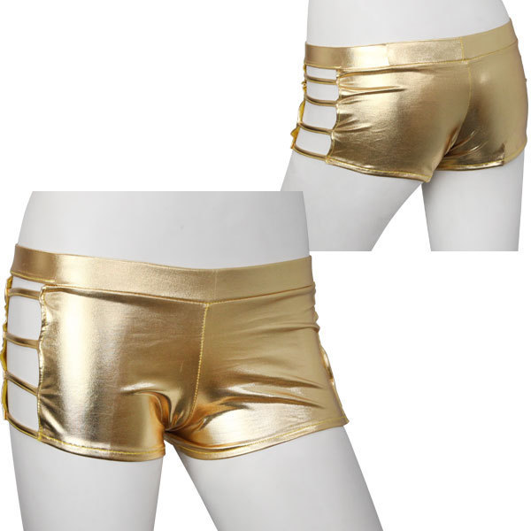 サイド魅せでセクシーに♪ド派手なメタリックゴールドのホットパンツ。