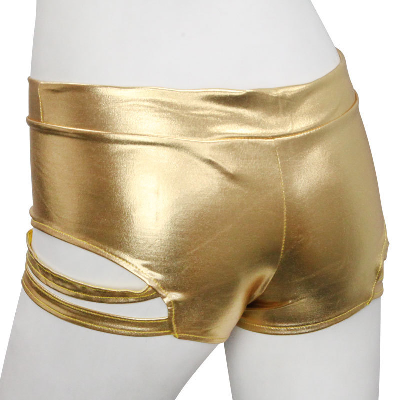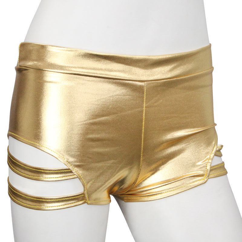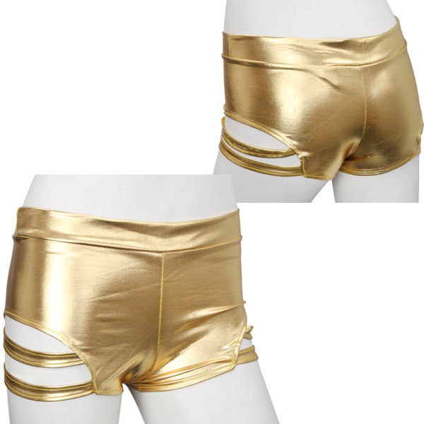 サイドのカット部から覗く素肌がセクシーなメタリックホットパンツ。
