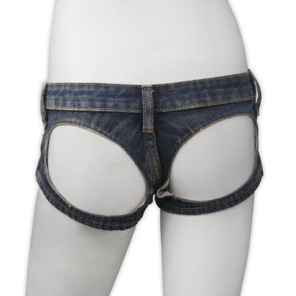 前から見ると普通のデニムパンツなのに、後ろはヒップを大胆に露出したオープンデザイン!男性の視線を釘づけにするセクシーコスチュームです。