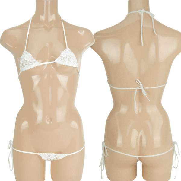 ●ピュアなホワイトカラー●隠す部分が少ない極小生地のマイクロミニブラ●見えそうで見えないGストリングショーツ(ローライズ)●結んで解ける紐仕様●日本製。