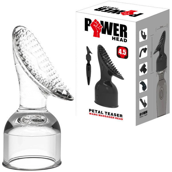 ●パワーワンド専用アタッチメント●清潔感のあるクリアカラー●優れた耐久性の柔軟エラストマー製●膣周辺をすっぽり包む幅広フォルム●ツブツブ突起を無数に配置●クリを捕らえる大きめ丸イボ●ヘッド直径4.5φcmの電マに使用可。