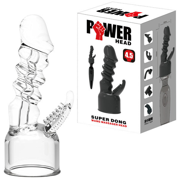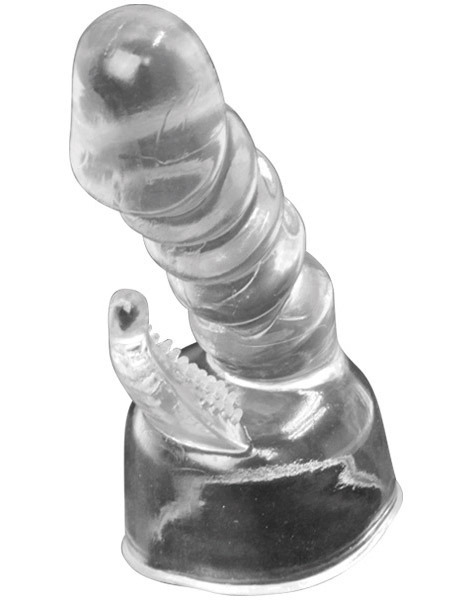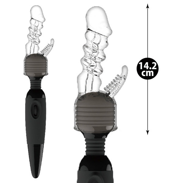 ●ヘッド直径4.5〜5.2cmの電マにセット●清潔感漂うクリアカラータイプ●先端が張り出したバイブ風ボディ●波打つ凹凸竿で挿入にアクセント●クリトリス刺激のブラシ突起付き●同型の黒色タイプ(