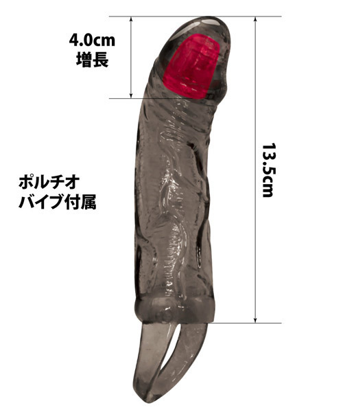 ●フルカバーの極厚サック●高伸縮・高耐久のTPE素材●先端亀頭部にローター搭載●押し込むとON・離すとOFF●先端部の厚みで約4cm増長●固定用の玉掛けリング付き●持久力と射精感もサポート●ローターは着脱&電池交換可。