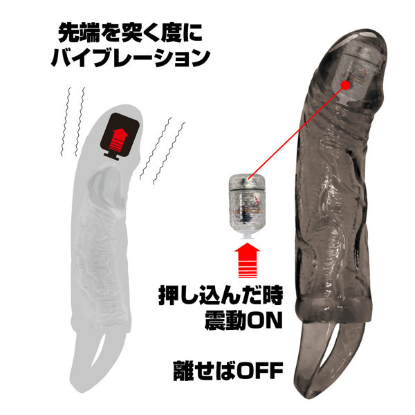 突く度に響く快感バイブレーション!亀頭ローター付きの電動ペニスサック。