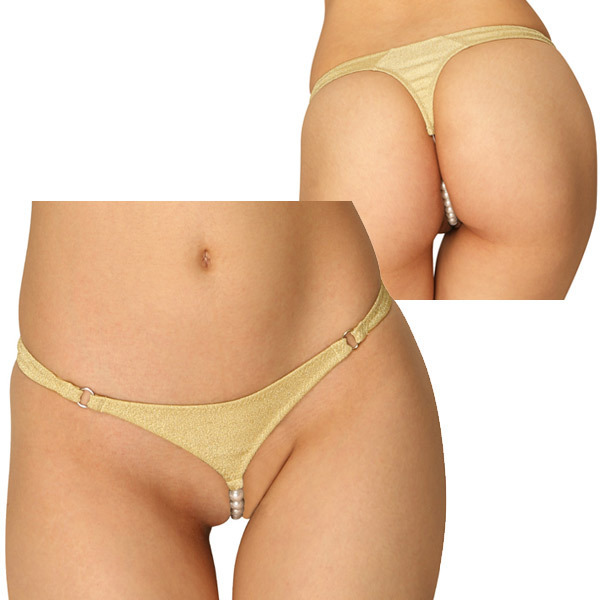 ●華やぐゴールドカラー●シャイニーなラメ入り●クロッチ部はパールビーズ●セクシーなTバック仕様。