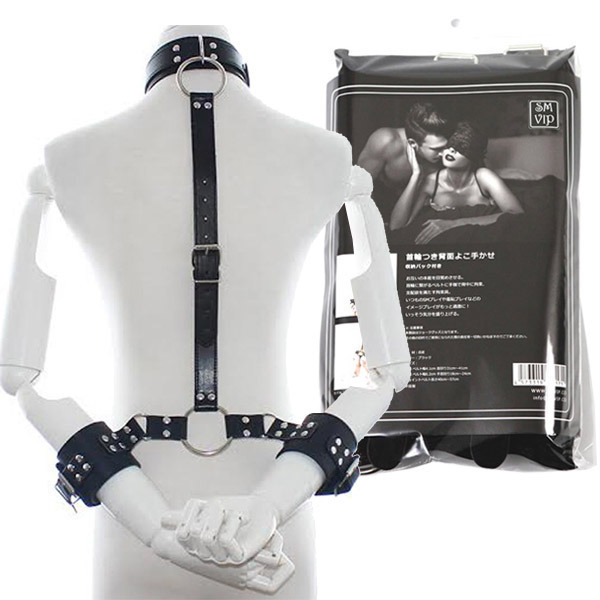首輪に繋がるベルトに両手枷で背面拘束!支配欲を満たすSM拘束グッズ。