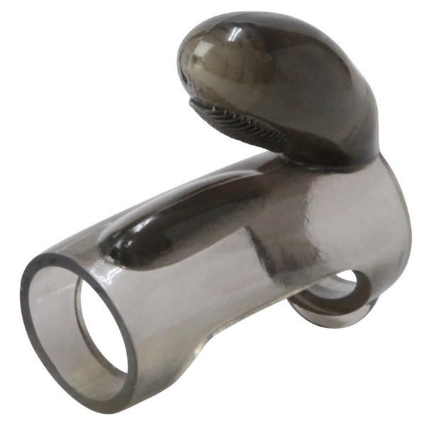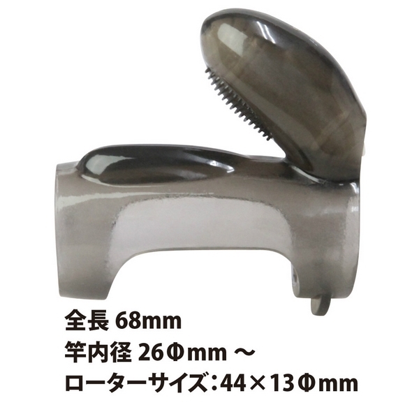 ●クリアブラックのハーフサック●全長6.8cm、竿内径2.6φcm〜●裏スジが露出する快感フォルム●伸縮自在の高品質エラストマー●竿を幅広く締め付けて持久力UP●トゲを配置したクリバイブ突起●付属のミニローターは着脱可。