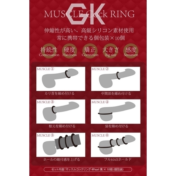 フィット感抜群の高伸縮なリングが10個入ったお得な男性用補助グッズ!単品使いや複数同時使い、装着箇所などアレンジ次第でプレイの幅も広がります。