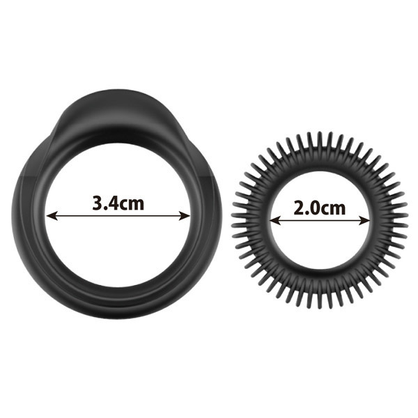 男性自身をしっかり締め付けて強力サポートするペニスリング2種セット!2個同時に装着すれば神の如きパワーがその竿に宿るかも。