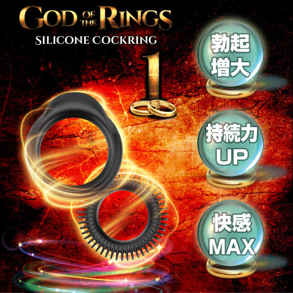勃起増大、持久力UP、快感MAX!高品質シリコン製コックリング2種セット「ゴッドオブザリング 1」。