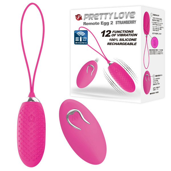 膣の奥へと突き進む強烈振動が特徴のリモコンローター「プリティラブ リモートエッグ2 ストロベリー」。