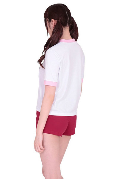 優しい色合いのソフトピンクで縁取った半袖トップスと、萌え要素たっぷりなキュートピンクの短パンスタイル!ゼッケン付きで本物っぽく楽しめる体操服コスプレです。