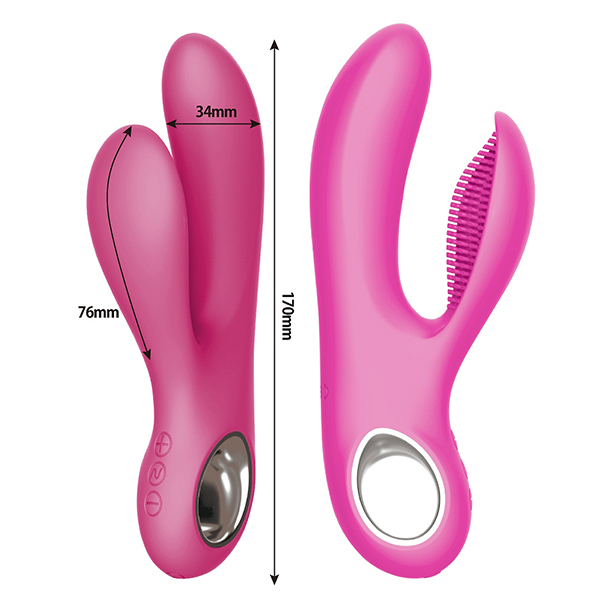 素材には高品質のメディカルグレードシリコンを採用!無数の突起がついた子機とバイブが一体となり、V筋ゾーンを挟み込んで刺激を与えます。