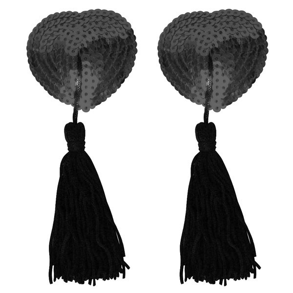 ピタッと貼るだけの簡単仕様♪バストトップ(乳首)に貼るだけで、手軽にオシャレが楽しめる下着感覚のニップルジュエリー「ニップルタッセル スパンコールハート 黒」。