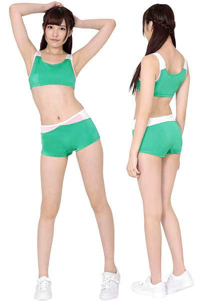 これで貴女もインストラクター!「美人インストラクターの誘惑」が登場♪ミントグリーンの爽やかなトップスとパンツがセットになったこちらの商品は、全面に健康美をアピールしたい方に最適なコスチュームとなっております。