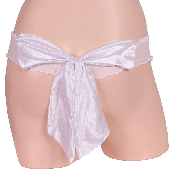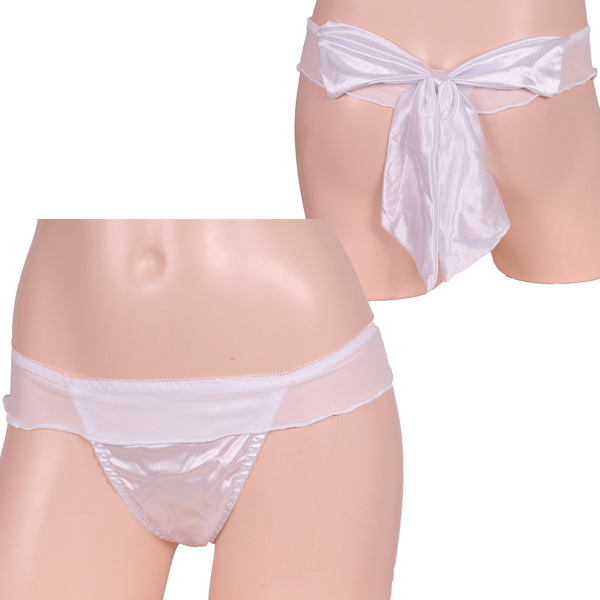 バックにはニットサテンの大き目なリボンをあしらった贅沢な白のTバック。