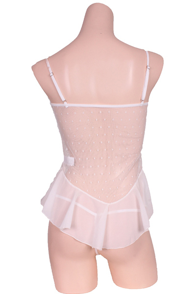 > フリルとレースで可愛さ増しベビードール&Tバックセット ホワイト