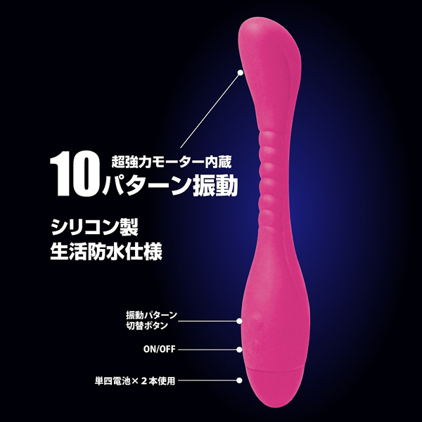 ギリギリ奥まで挿入できるタイプのストレートバイブをお探しの方には特にお勧め!10パターンによる豊富な振動刺激やコブラのように根本からフレキシブルに曲がる挿入シャフトも新鮮ですよ♪生活防水仕様なので、使用後のメンテナンスも簡単です。