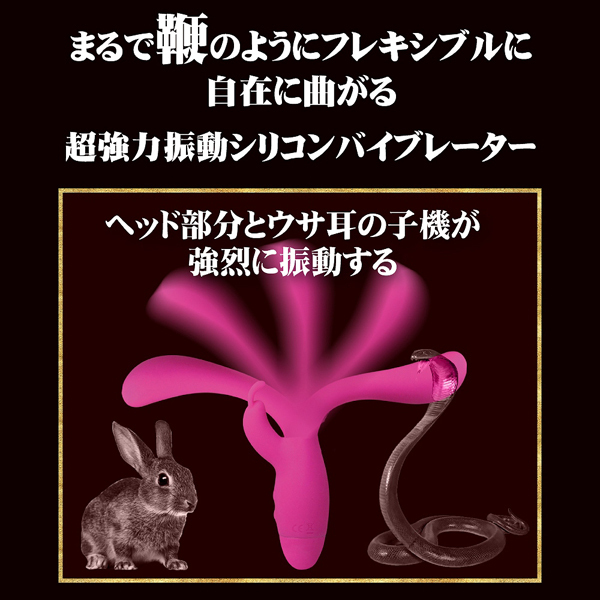 先端部分とクリバイブに内蔵されている強力モーターが生み出すバイブレーションは圧巻!滑らかな肌触りのシリコン製ボディは挿入しやすく、先端はぷっくりと膨らんでいてGスポットを狙いやすく、クリバイブはうさぎの耳の形となっているためしっかりとクリを捉えてくれます♪挿入すると穴道に合わせて追随するフィット感バツグンの先端構造は思わず垂涎モノ!10パターンもの豊富な振動に動同期する挿入部とクリバイブは、どちらも生活防水仕様なので使用後のメンテンス性にも大変優れています。
