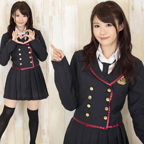 キラキラ輝く金のボタンや、紺のブレザーにアクセントをつける赤ラインなど、アイドル女子にふさわしい豪華な仕上がりとなっています♪フェミニンなパフスリーブのブラウスを併せれば貴女の煌めきも更にUP!アイドル女子校生に変身してキラキラ輝いて☆