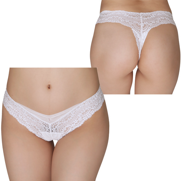 ローライズ仕様の総レース日本製Tバックショーツ。