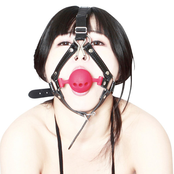 さらにシリコン製のボールギャグが開口させたまま口元を固定、ダラダラと垂れる涎もまた興奮必至!装着者の醜いブタ鼻をさらしながら羞恥する表情を見たい方は試す価値アリなアイテムですよ♪鼻フックの位置はベルト調整が可能となっております。