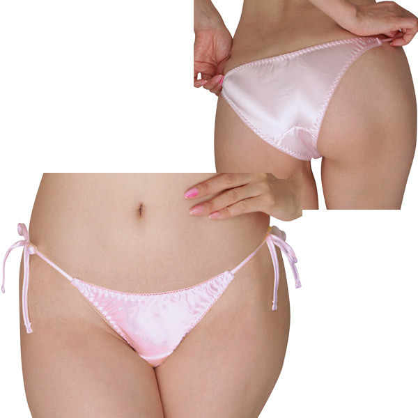 > 光沢サテン脇紐フルバック ピンク