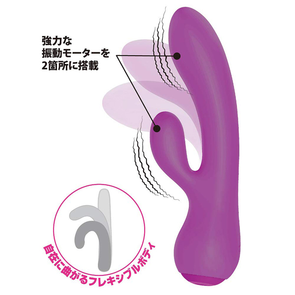 自在に曲がって快感ポイントに確実にフィット!子機と親機の超強力振動でG-spotとC-spotに究極の快感が襲う!!●12パターン振動●Wモーター搭載●高品質シリコン素材●生活防水●静音設計●専用USB充電コード付属、充電時間:60分、連続稼働時間:40分