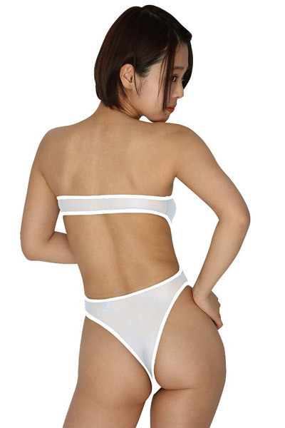 極薄生地から透けて見える素肌がセクシーな日本製ハイレグコスプレ(白)。